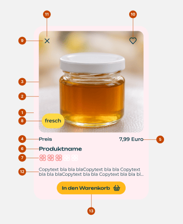 Stelle dir vor, du hast richtig Lust auf einen süßen Akazien-Honig und möchtest dir ein entsprechendes Produkt kaufen. Wähle hierzu bitte über den Geschmack das Produkt aus, schaue dir die Produktdetails an und füge es deinem Warenkorb hinzu, bis du zur Bestellbestätigung gelangst.